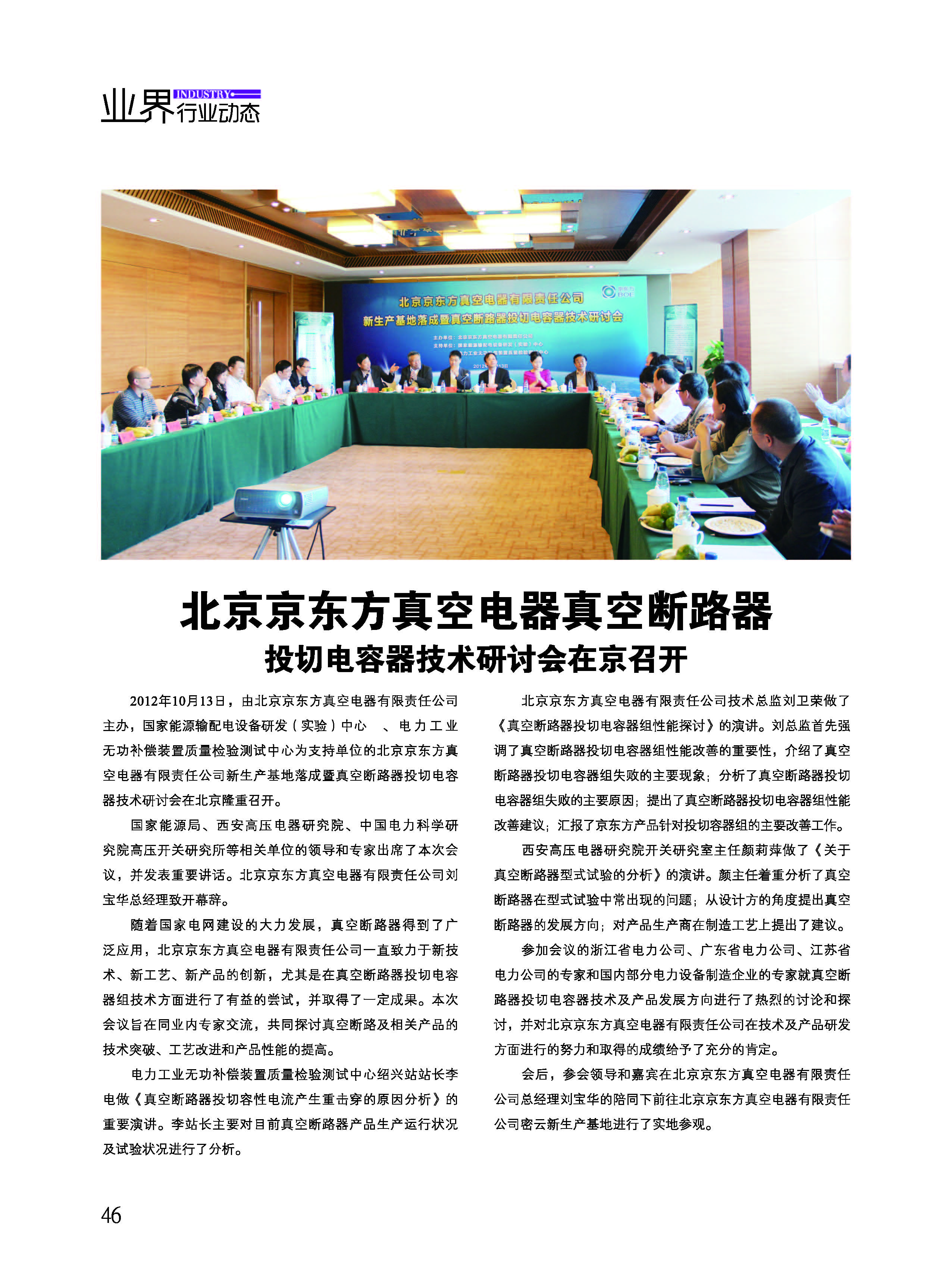 转:北京京东方真空电器真空断路器投切电容技术研讨会在京召开